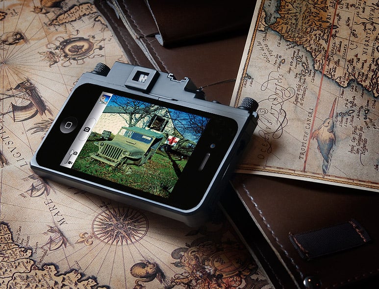 The Gazmon ICA ($70) is made from 32 separate pieces giving you the feel and handle of a real camera. It features a tripod mount, carry case, and three different lenses (wide, macro and fisheye).