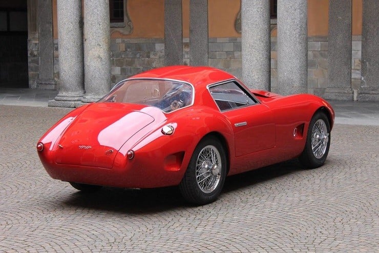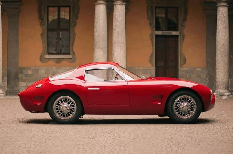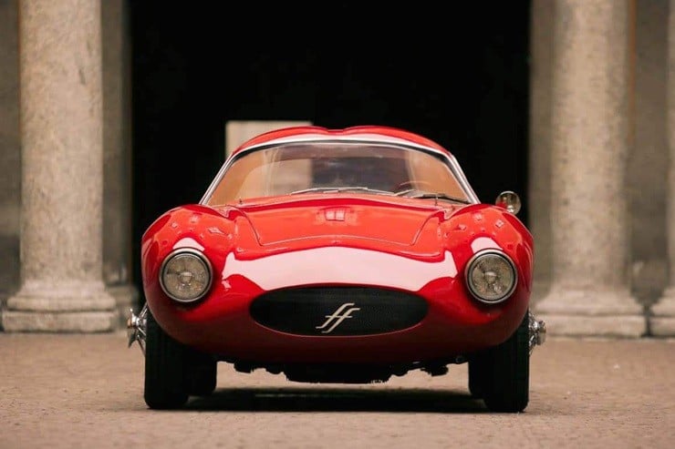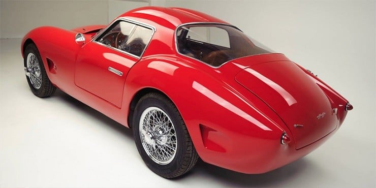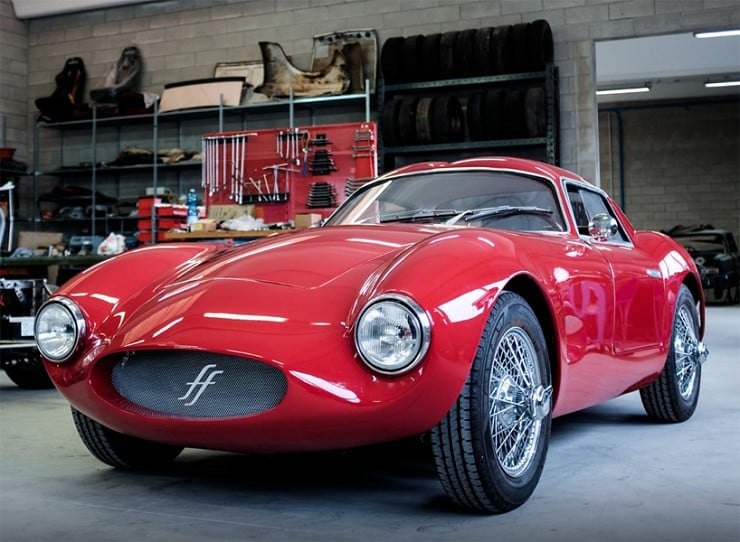 Powered by a front-mid mounted 2L Alfa Romeo four-cylinder engine matched with a five-speed manual gearbox and two Weber DCOE carburetors, this classic looking machine produces 180 hp at 6,500 rpm.  To continue the 50’s & 60’s motif, the Effeffe Berlinetta has rack and pinion steering along with a live rear axle with fixed lower trailing arms and Watts linkage.  The interior is lushly furnished with hand-crafted Matteograssi leather, a mahogany Nardi steering wheel, and aluminum pedals over a wool carpet.