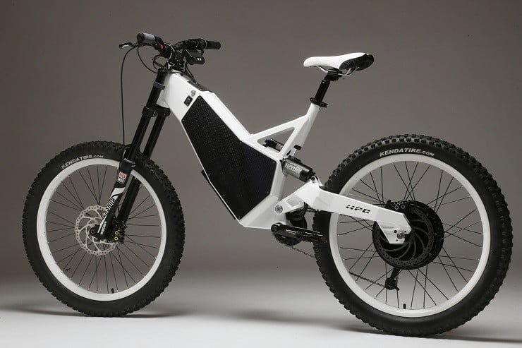 Hi-Power Cycles, out of Los Angeles, California have started a ‘Revolution’ to build the ultimate Freeride/DH electric bicycle in the world. Touted as the fastest, most agile, and powerful downhill, the HPC Revolution eBike ($8,700+) is also the lightest!