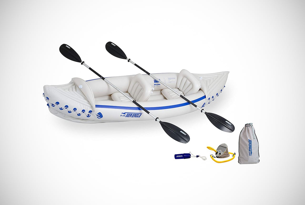 The appropriately, if a little worryingly named Aqua Marina KO inflatable kayak is an awesome, affordable choice. Though we don’t want to think of the word “KO” when going fast down a river. It’s a perfect model for kayaking enthusiasts or those just getting into it.