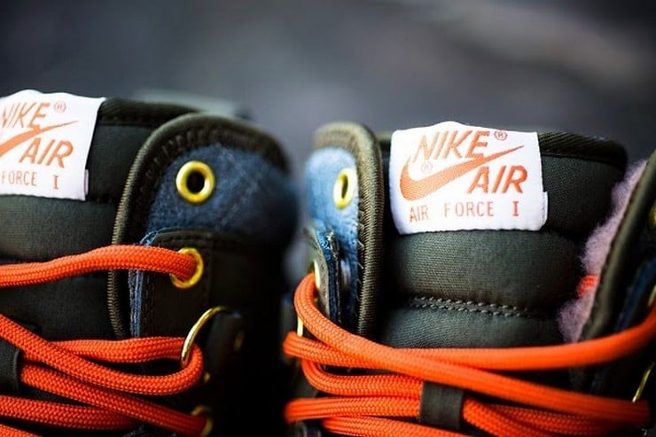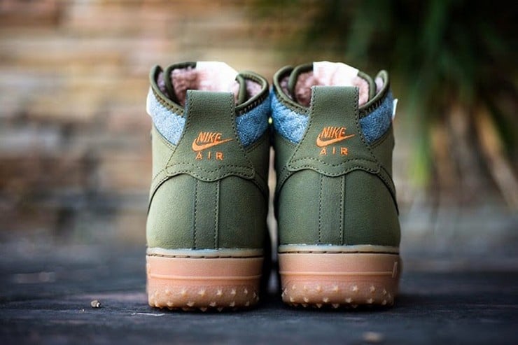 Featuring a military green upper, an offset brown Nike Air sole, and a standout orange lace arrangement, the Air Force 1 is certainly a striking silhouette.