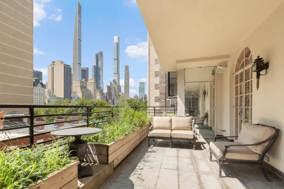 Likewise, this Manhattan penthouse has two stone terraces that offer amazing skyline and Central Park views. An extra $21,068 monthly fee gets the new owner a full-time doorman. Zina Raslan and Carl Gambino of The Gambino Group at Compass have the listing.