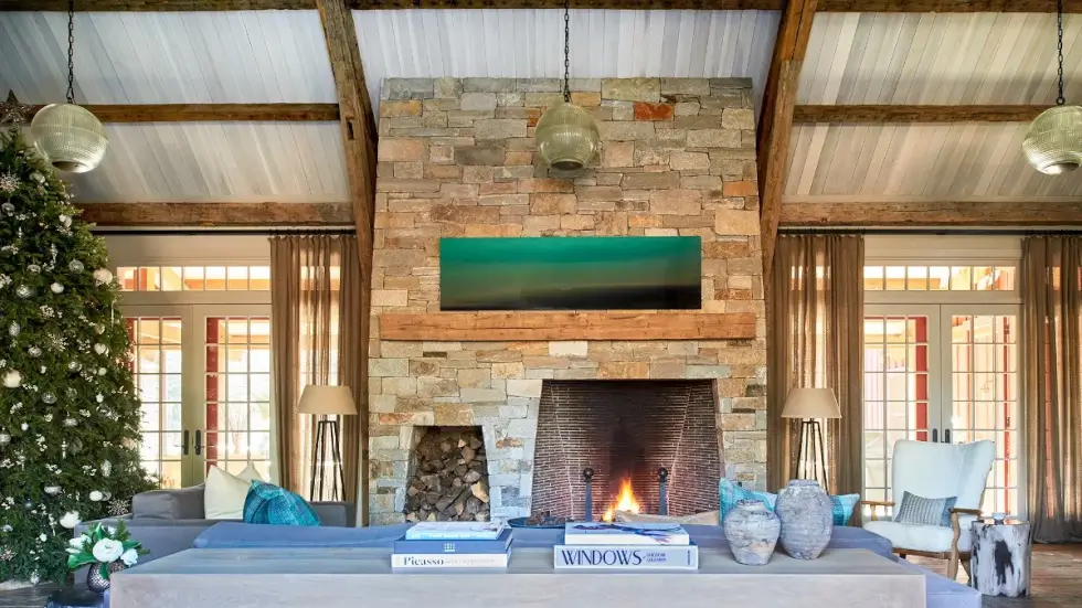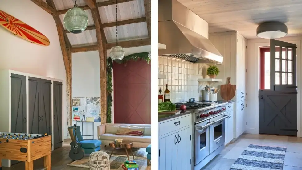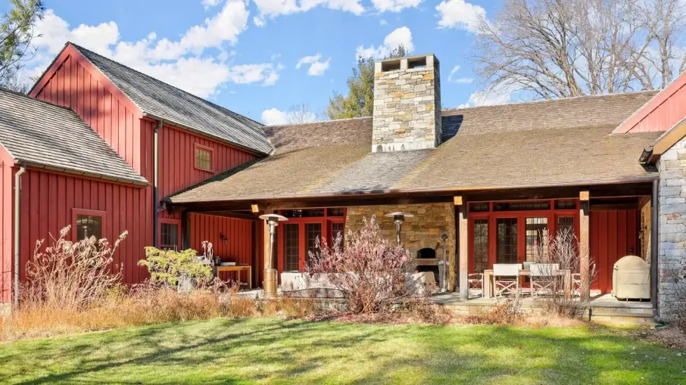 Meanwhile, the barn, built in 2014, is painted red and features a rustic, yet modern farmhouse-style interiors. It has a huge, high-celling great room, a massive stone fireplace, a lounge/media room, office, gym, a catering kitchen, wine cellar, two bedrooms and two baths, and a covered outdoor dining.
