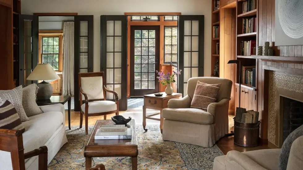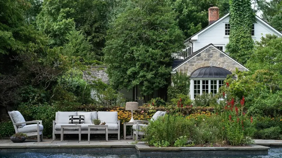 The bucolic parcel includes a restored colonial-style farmhouse and an entertainment barn built in 2014. The impeccably maintained farmhouse has secluded stone terraces and pool. No expanse was spared when it underwent renovation in 2007 to 2009. It features top-of-the-line materials and luxurious finishes which seamlessly blend modern amenities with original vintage details.