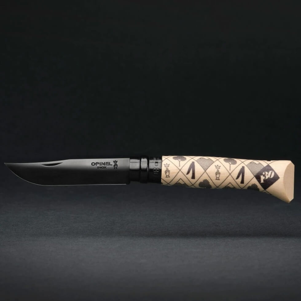 The Opinel 130th Anniversary No. 08 Folding knife marks Opinel’s 130 years in the knife-making business with the Opinel 130th Anniversary. It tells the story of the brand’s strong symbols on the handle.