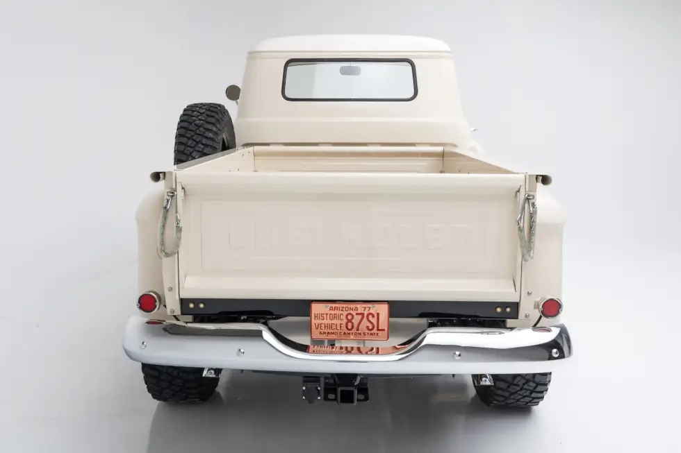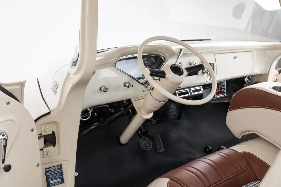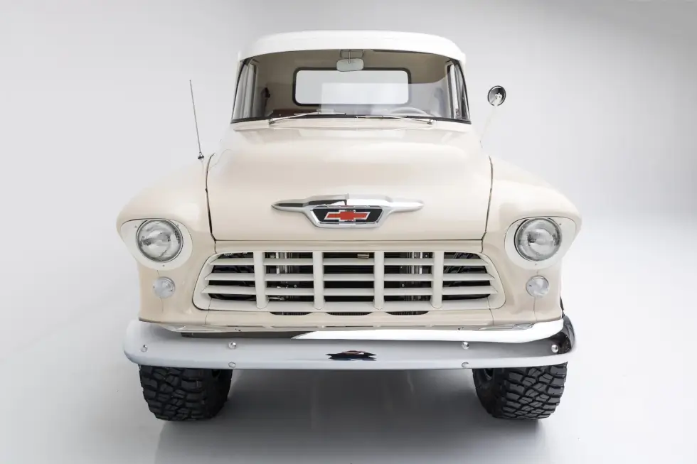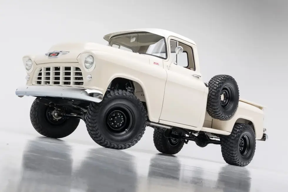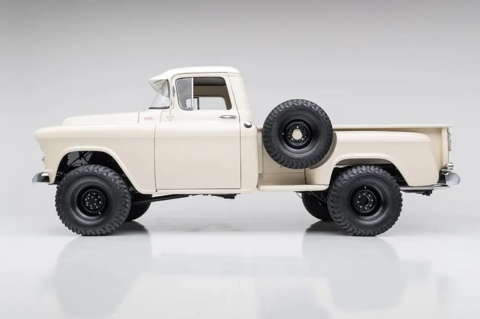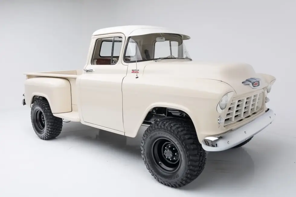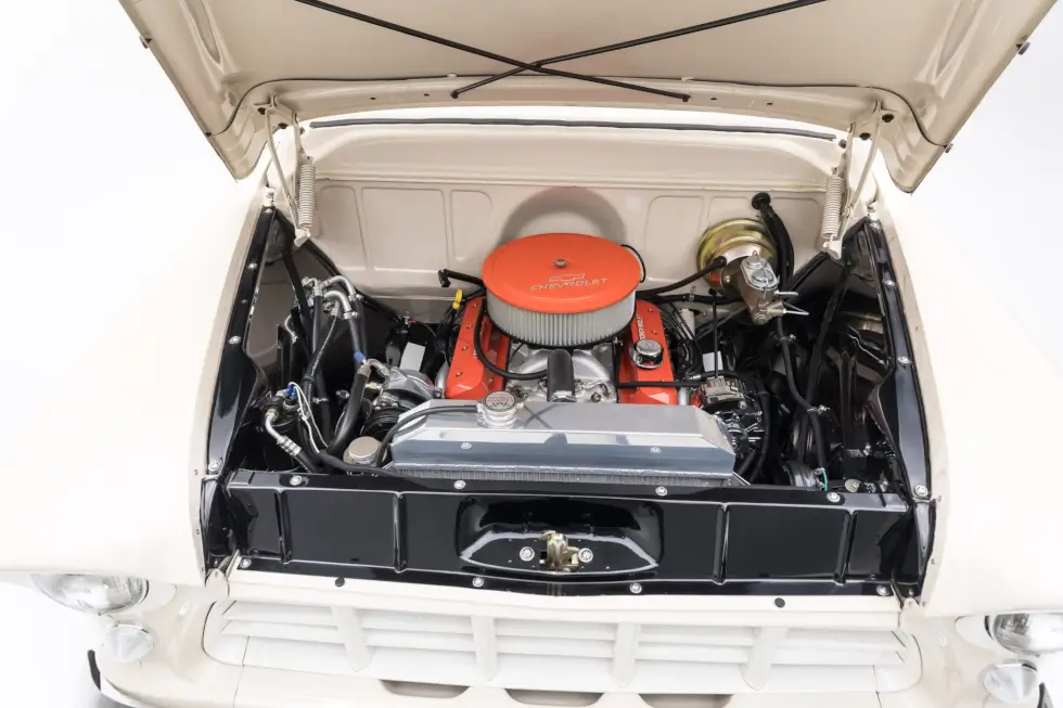 The 1955 Chevrolet 3200 boasts a 5.7-liter GM Performance V8 with Holley Sniper EFI. This is mated to a 700R4 four-speed automatic gearbox. The output should be approximately around 330 horsepower and 380 lb-ft of torque. There’s a dual-exhaust setup that comes with Magnaflow mufflers.
