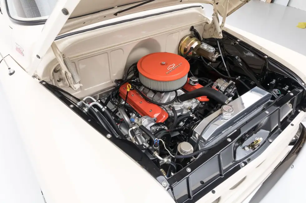 Whoever managed to snag this pickup when it went under the hammer has a beauty in their hands. The restomod with chassis number M255K025488 eventually sold for $76,500 last week. To give you guys an overview of what is under the ivory over white exterior, let’s begin with the powertrain.