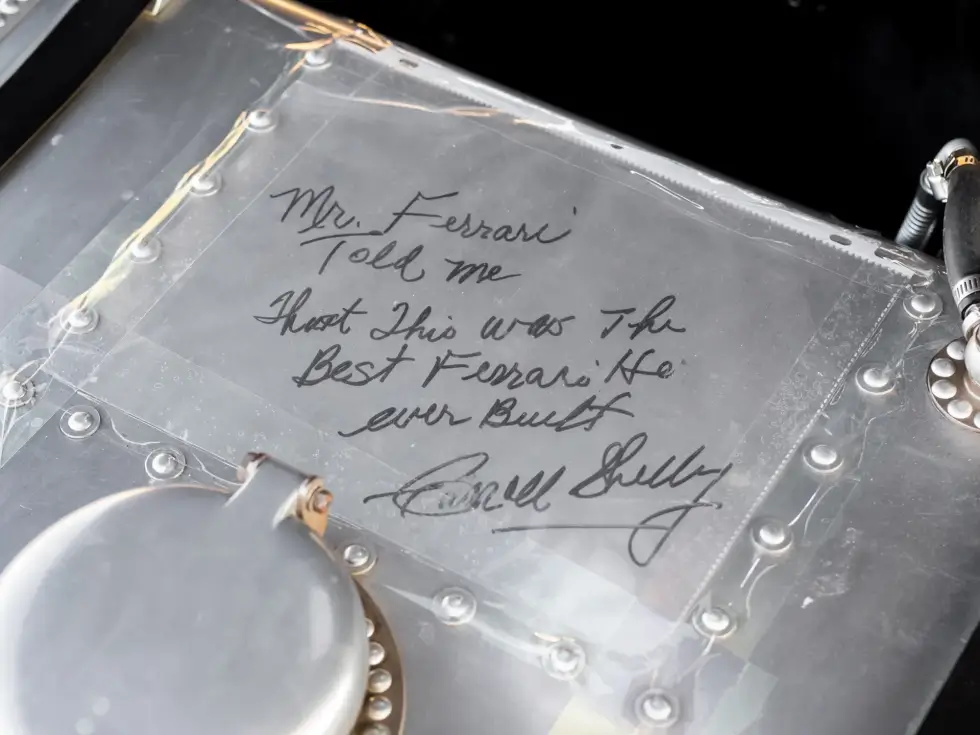 The coachwork on this 1955 Ferrari 410 Sport Spider is by Sergio Scaglietti. Moreover, the fuel tank features an inscription by Shelby that reads, “Mr. Ferrari told me that this was the best Ferrari he ever built.” Whoever outbids everyone else will also take home more than just the racer.