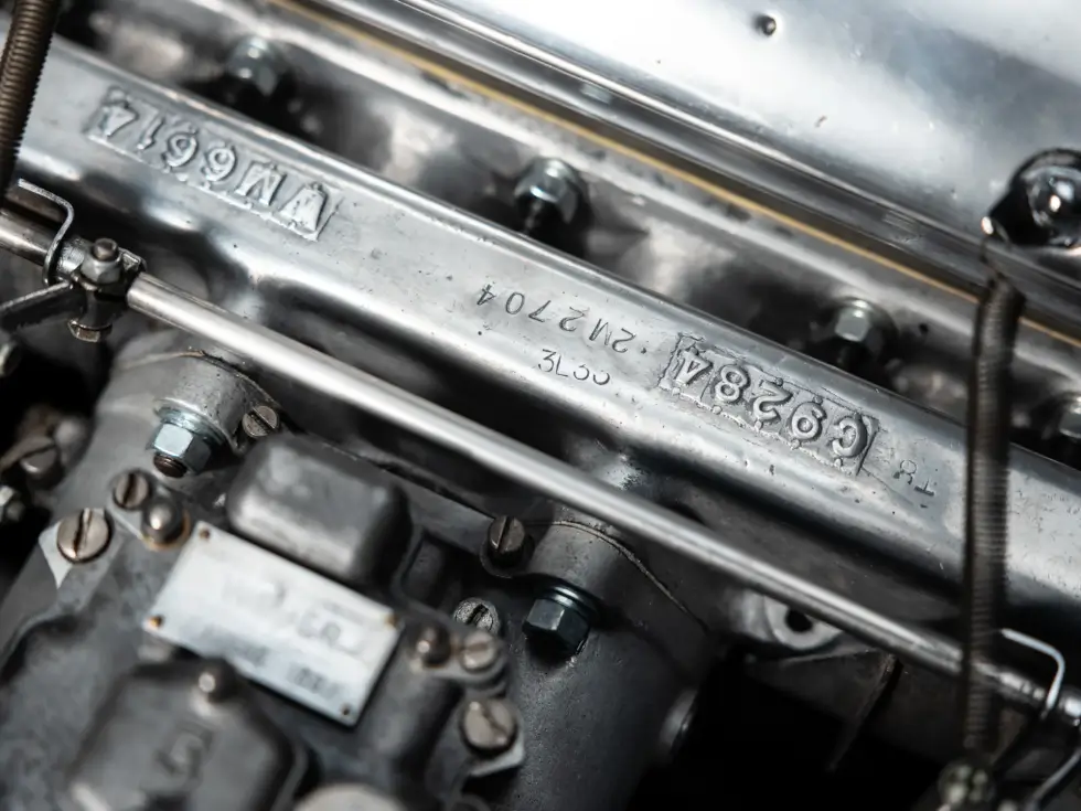 A thorough inspection tells us chassis number XKD 540 and body number H 2040 all match. As for engine number 2029-9, service records show an upgrade from the standard 3.4-liter specification to a 3.8-liter mill in 1960. Nonetheless, all the work was done by the Jaguar factory, which also retains the original cylinder head.