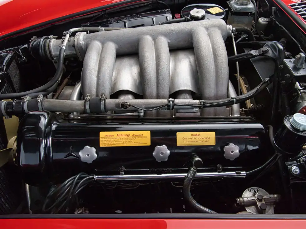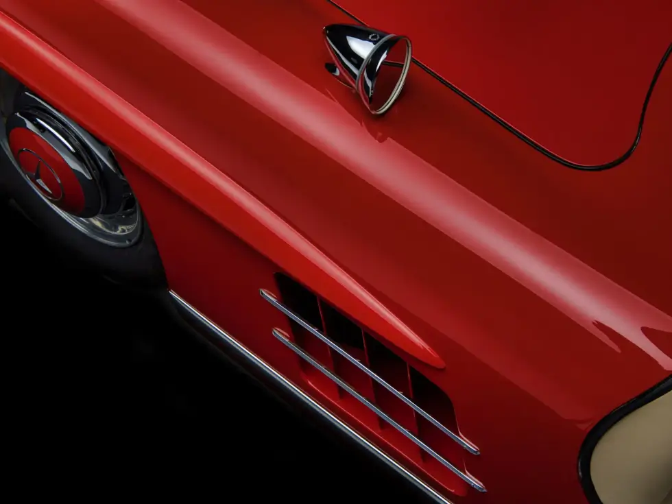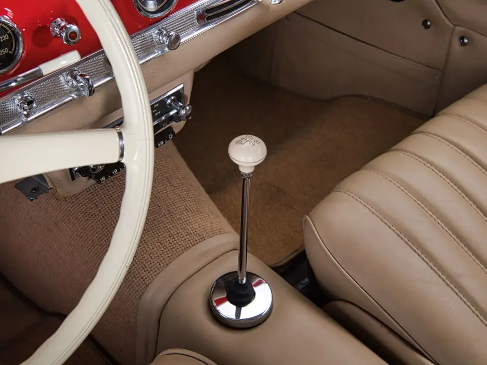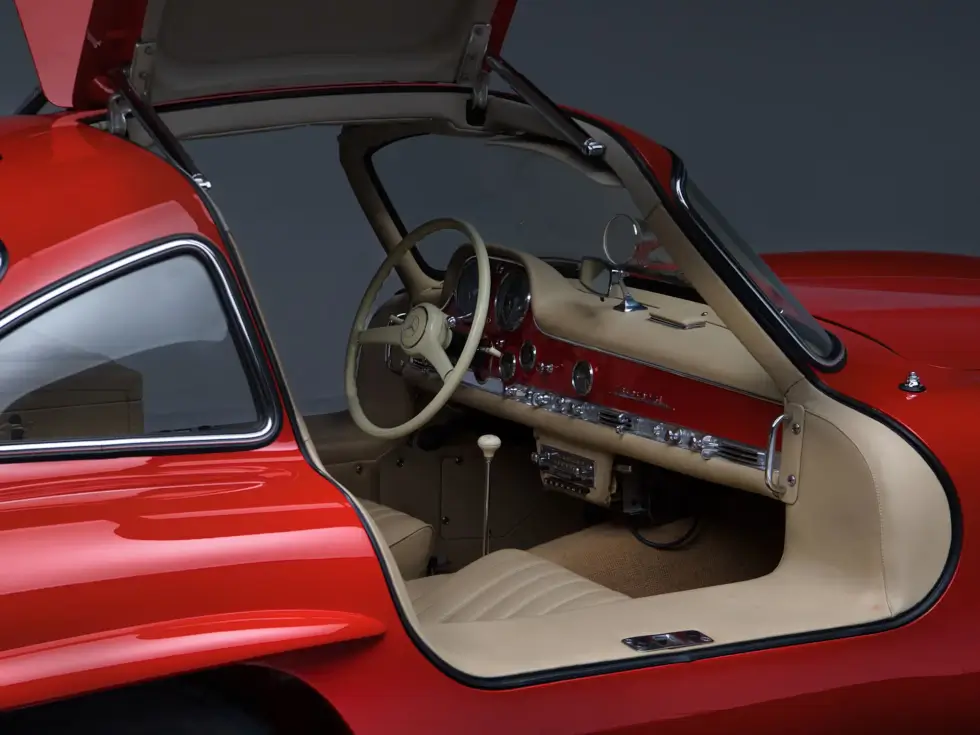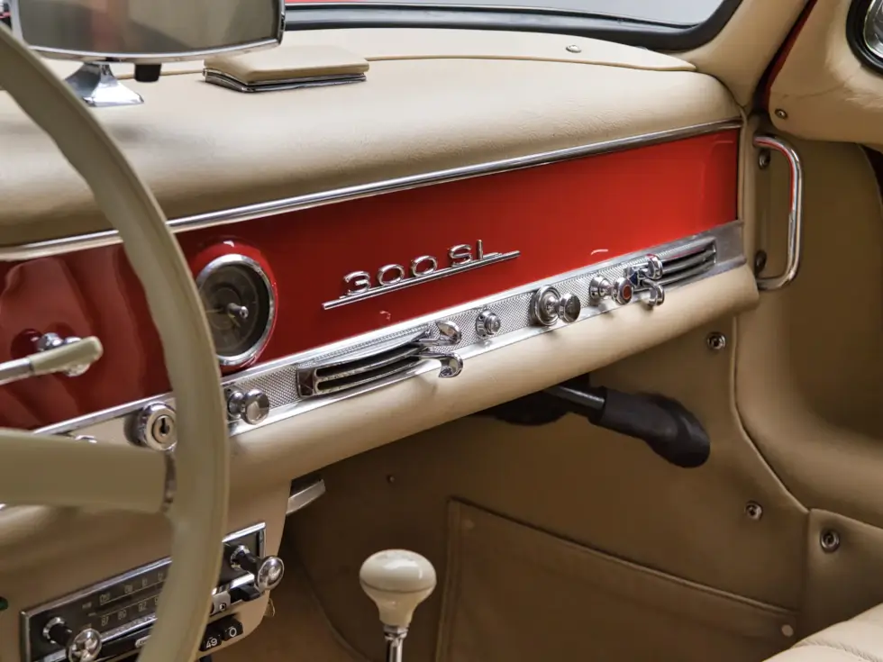 Mercedes-Benz gave it a coat of Fire Engine Red (DB 534) with an interior upholstery in Crème (1060) leather. The 1957 300 SL Gullwing packs a 3.0-liter straight-six paired with a four-speed manual transmission. The powertrain cranks out 240 horsepower and 217 lb-ft of torque which it directs to the rear wheels. The two-seater can reach mph from zero in less than 10 seconds and hit a top speed of 163 mph.