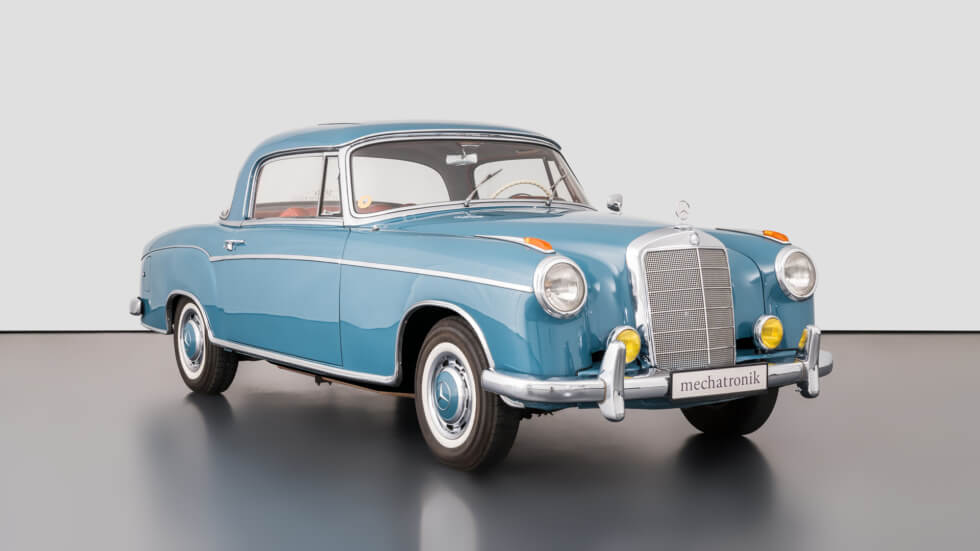 The coupe is a post-war design and also the German carmaker’s “first-ever monocoque, unitary body production model.” Moreover, it was only on the market for a decade or so. Contrasting the hue of its exterior are silver bumpers, window surrounds, headlight surrounds, and door handles.