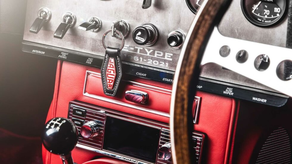 As you can see, the colorway represents the shades you can see on the Union Jack flag. It certainly keeps the vintage look intact, but also welcomes some contemporary tweaks. Jaguar Classic outfits the roadster with LED headlamps, an infotainment system with Bluetooth support, and a small display for navigation.