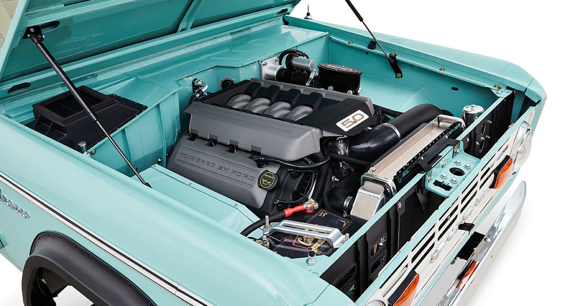 Under the hood sits a Ford Racing 5.0-liter Coyote engine paired with a 4R70W automatic transmission. Other features include a Billstein suspension system, Hydroboost with Wilwood brakes, factory chrome bumpers, and Borgeson power steering.