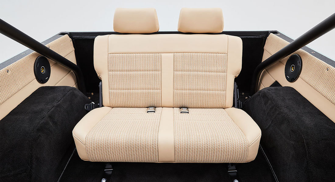 For this project, the exterior is Jupiter Blue, while the interior is Sunkissed Sand. This color combination evokes thoughts of the ocean and the beach, which is surely somewhere it can go to. The all-terrain BFGoodrich rubbers on each wheel can practically take you anywhere
