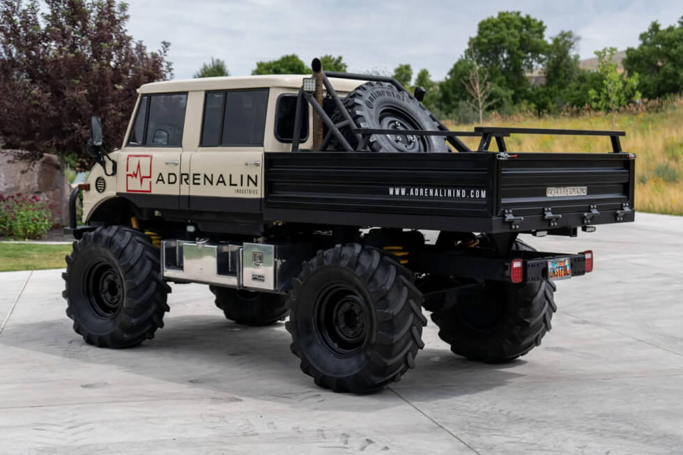 A Warn 15,000-pound winch with a synthetic line, Factor 55 fairlead with UltraHook, three locking differentials, an aftermarket suspension upgrade, and a body lift tell us this truck means business. The 1976 Mercedes-Benz Unimog 416 Doka can practically handle anything the trails throw its way.