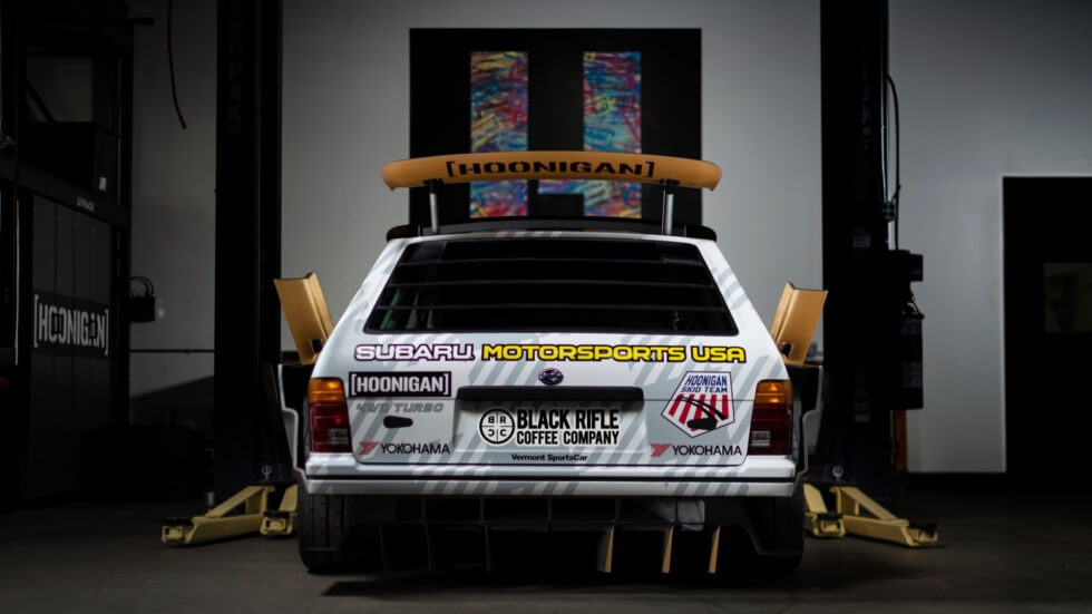 Since this is a Hoonigan platform we’re talking about, the stock powertrain was soon out of the picture. The 1983 Subaru GL Family Huckster is now running on a tuned boxer four with a six-speed sequential transmission. Although the specifics are not available as of this writing, the team says the output is around 862 horsepower.