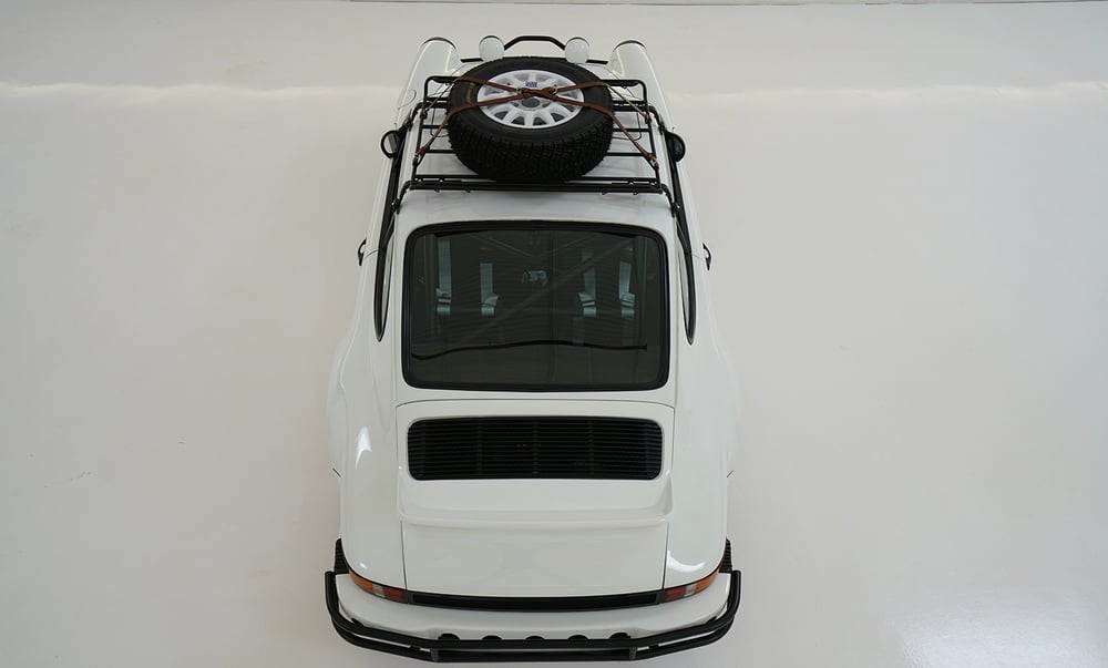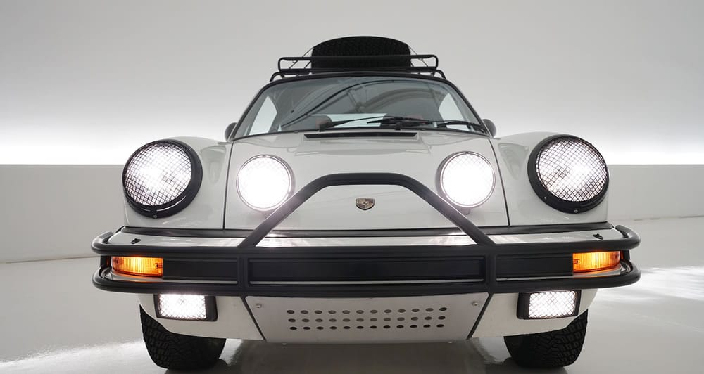 The modified rally-style 911 Carrera is quirky and undeniably interesting, being both a cool off-road vehicle and a great everyday car. Inspired by California’s racing history, specifically desert races, the tuners have equipped the Porsche with off-road lights, skid plates, lifted suspensions and a vintage-hipster-style roof rack with a spare tire secured on with leather straps.