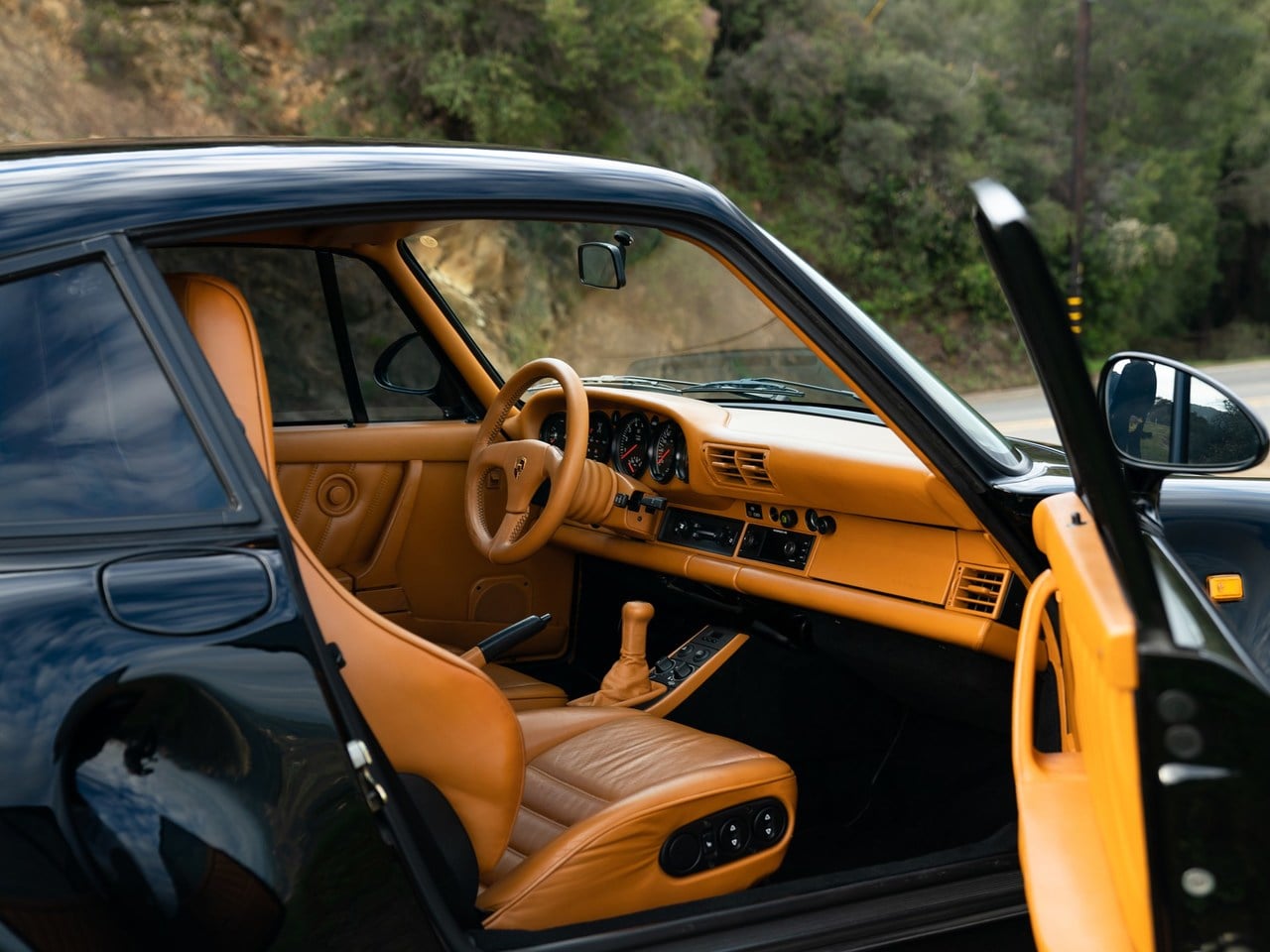 Then he asked that every interior surface covered in leather — even the air vents and electronic window switches — and his wishes were Porsche’s command. He also opted for sports seats with an electric height adjustment, a caramel brown interior motif, heated front seats, and an alarm system. The car comes with a special CDR-210 radio, exclusive at the time, and a special steering wheel featuring the Crest. You’ll also find black carpeting and matching black stitching on the steering wheel and seats.