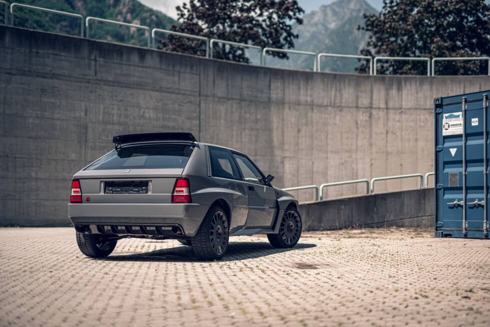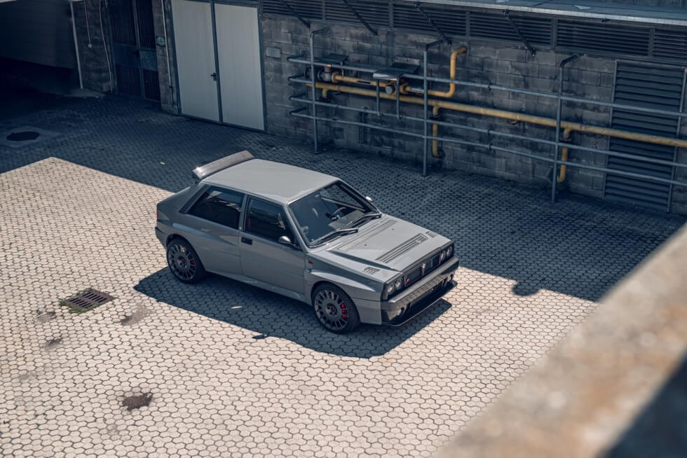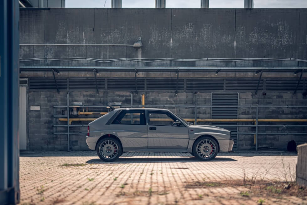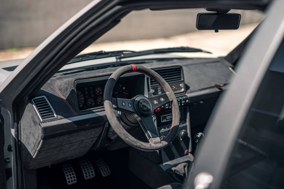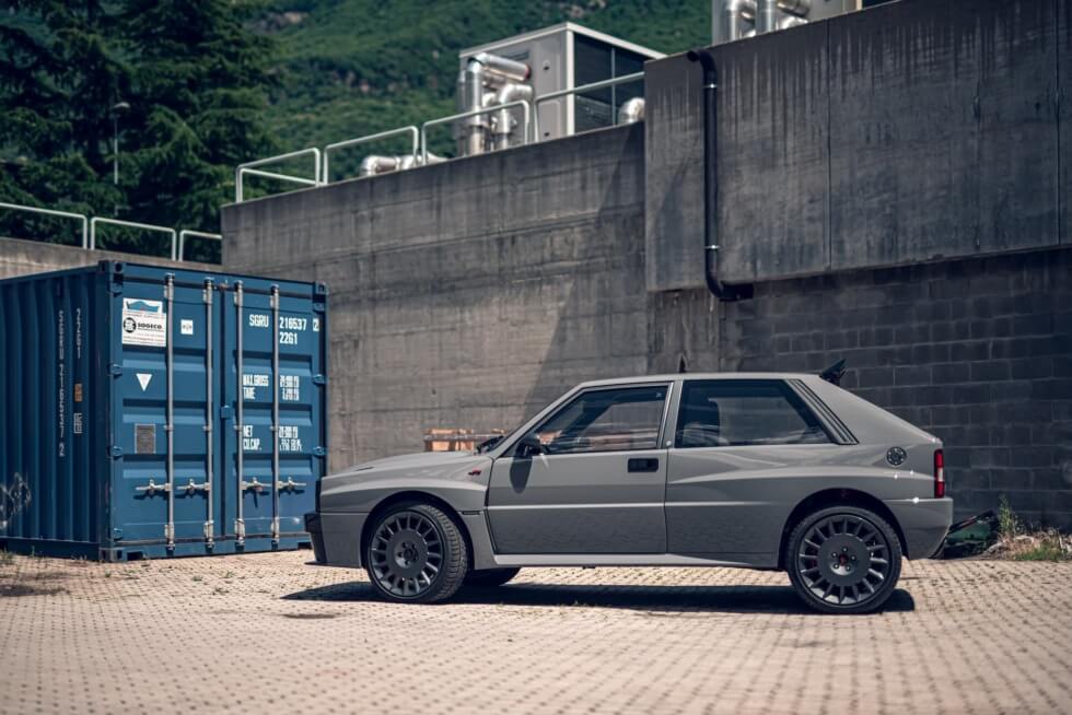 Automobili Amos endows the exterior with a coat of Grigio Lago Maggiore, Rosso Alfa Romeo, Anthracite, and trim accents in carbon fiber. Meanwhile, the cockpit is adorned with Anthracite Alcantara upholstery that gets its contrast from the red stitching and seat belts. The 1992 Lancia Delta Futurista sports a set of 18” EvoCorse Turbofan allow rims wrapped in Pirelli Sottozero tires.