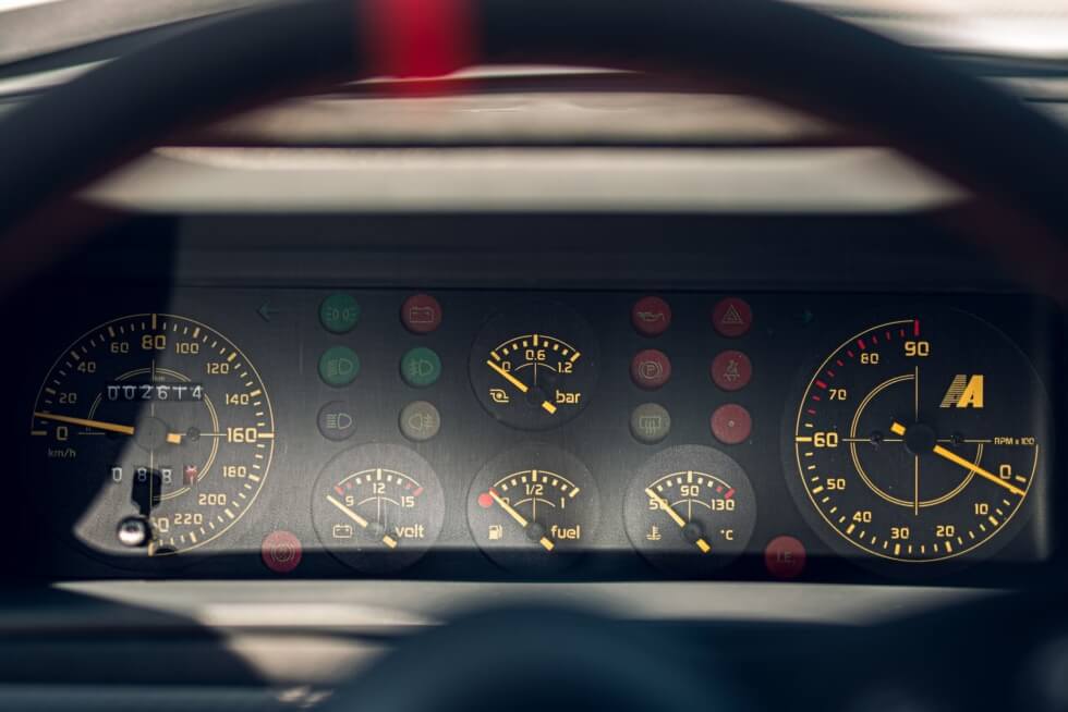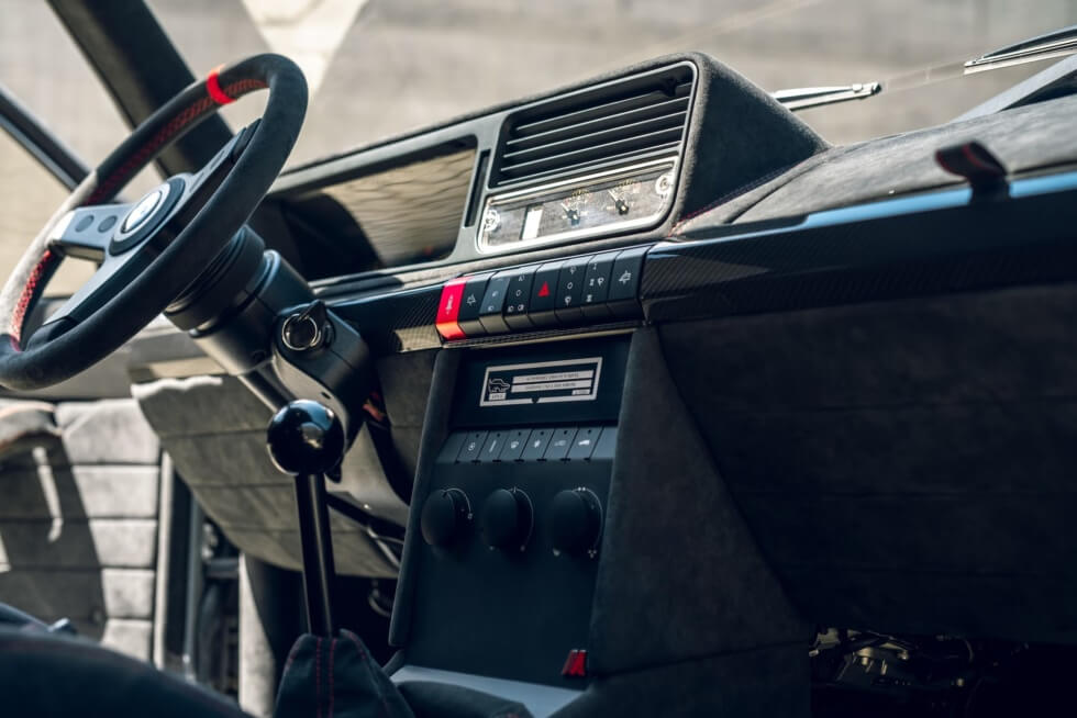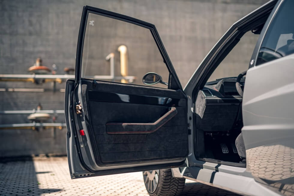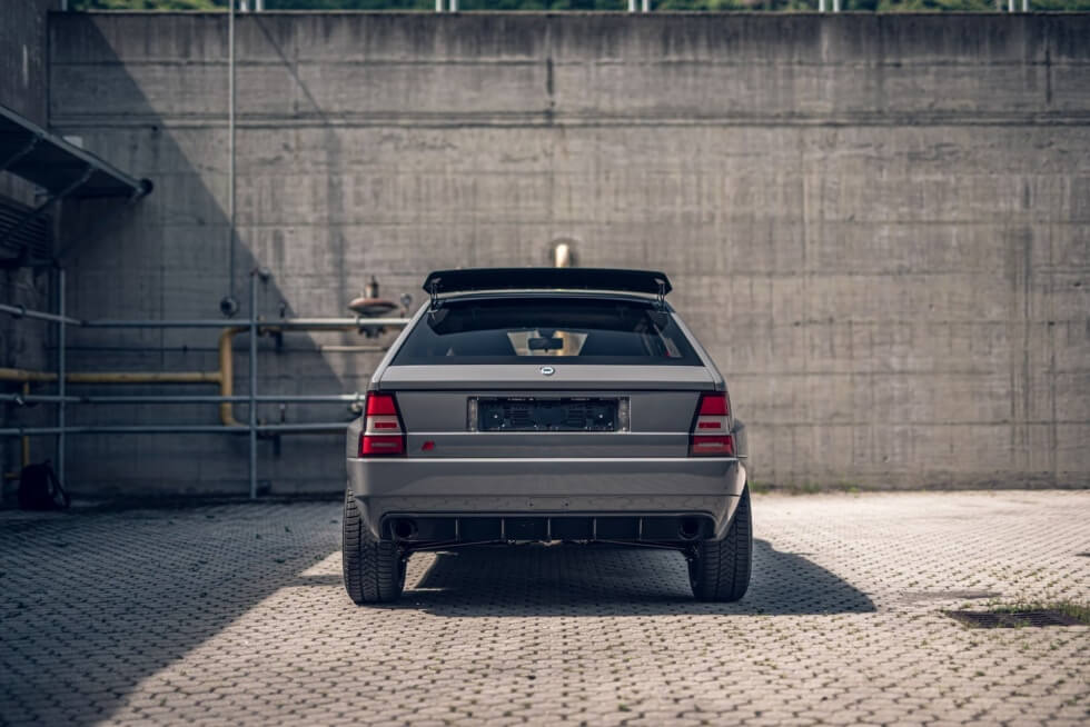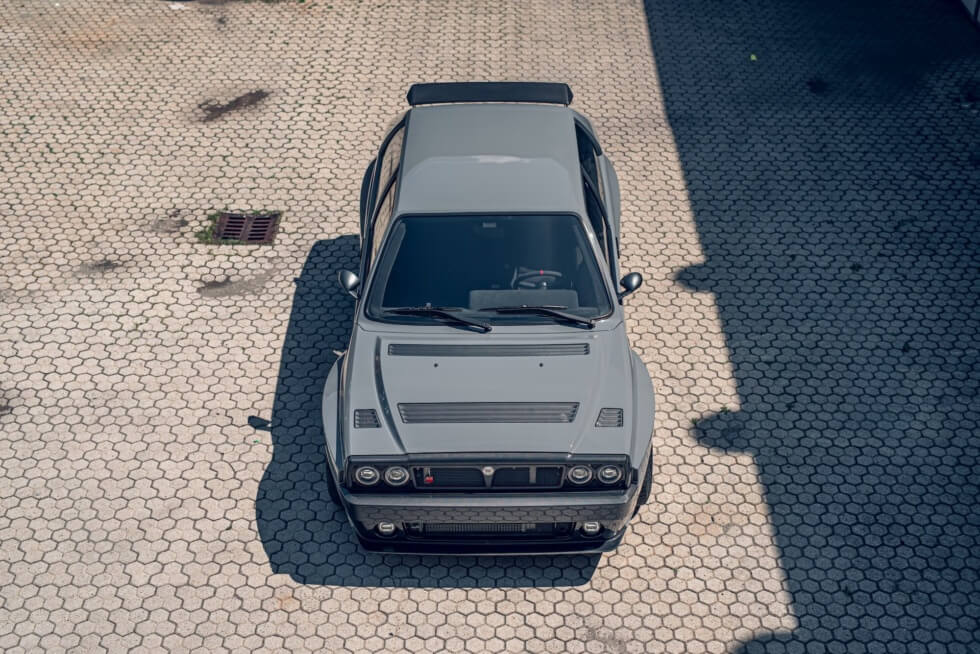 Automobili Amos endows the exterior with a coat of Grigio Lago Maggiore, Rosso Alfa Romeo, Anthracite, and trim accents in carbon fiber. Meanwhile, the cockpit is adorned with Anthracite Alcantara upholstery that gets its contrast from the red stitching and seat belts. The 1992 Lancia Delta Futurista sports a set of 18” EvoCorse Turbofan allow rims wrapped in Pirelli Sottozero tires.