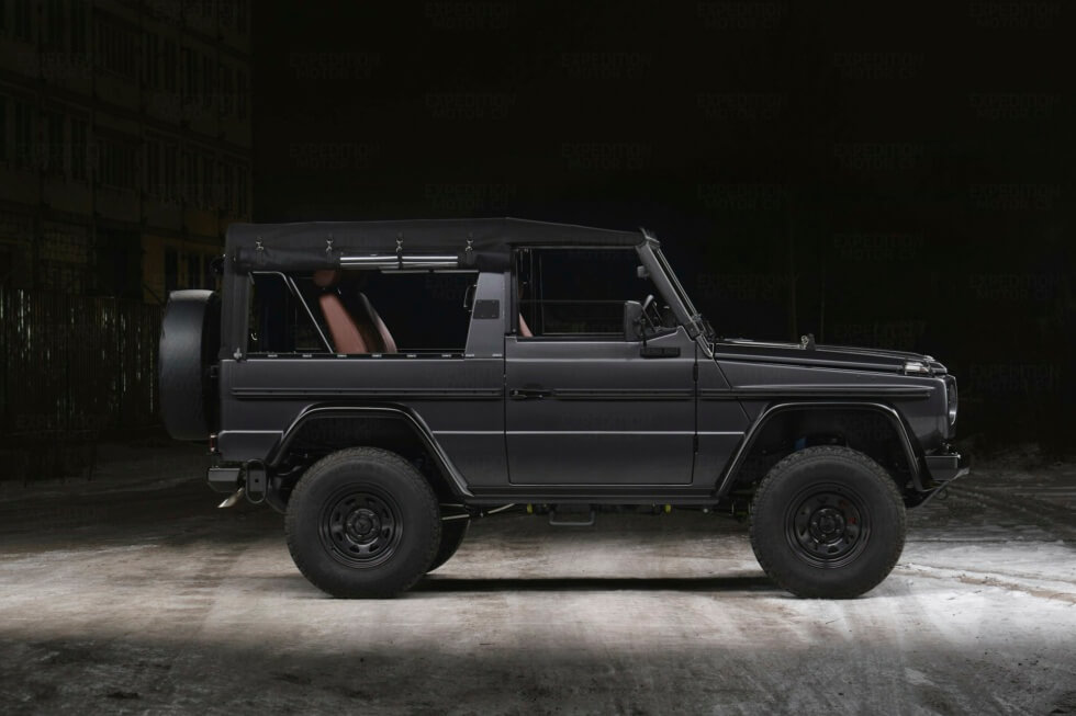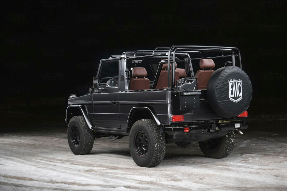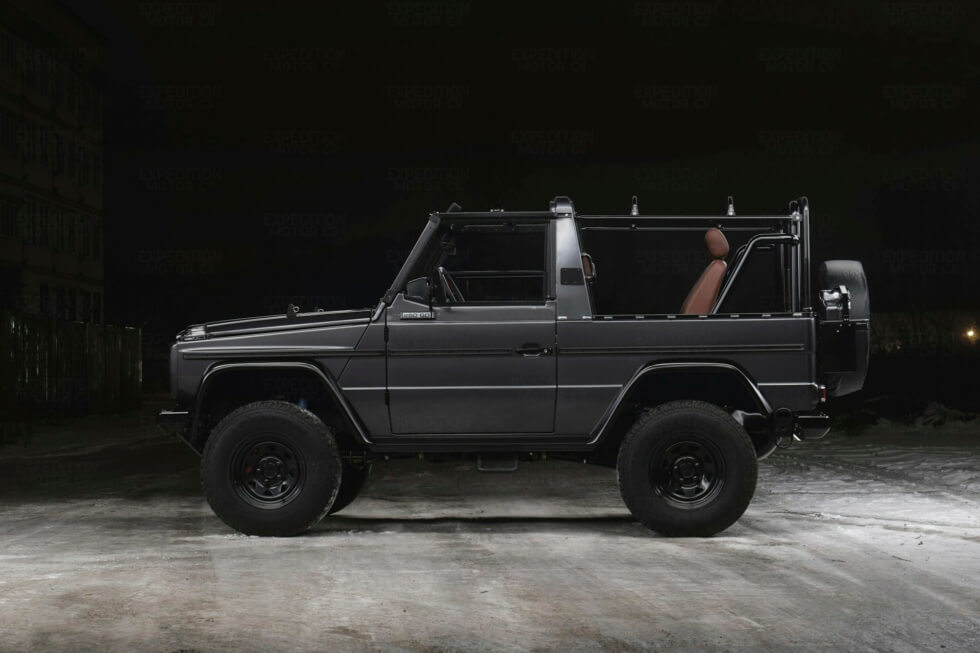 Expedition Motor Company then gives this Vesuvius Grey 1992 Mercedes-Benz 250GB Wolf a brown vinyl interior theme. The convertible body style lets you drive around sans the top, but quickly cover up when the weather takes a turn for the worse. Finally, this restomod will gladly go on even the roughest adventures.