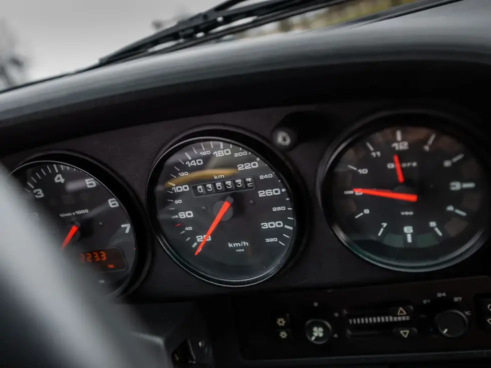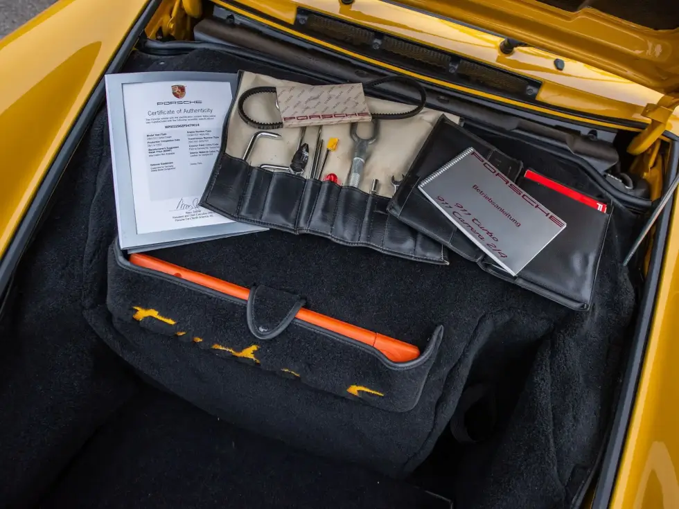 Rm Sotheby’s confirms that the 3.3-liter type M30/69 SL engine and chassis number WP0ZZZ96ZPS479014 are matching. The output of the 1993 Porsche Turbo S “Lightweight is 381 horsepower. Finally, unlike the usual setup, this example comes with air conditioning and power windows.