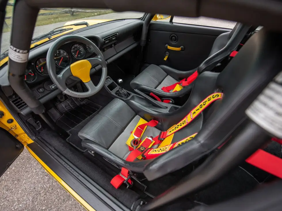 Like the name says, the 1993 Porsche Turbo S “Lightweight” tips the scales at 2,850 lbs. This makes it 400 lbs. lighter than the standard version of the coupe. Aesthetically, the German marque ensures it captures the exact look of the 964 Carrera RS 3.8. However, there are some elements on the regular trim that you won’t find on this bad boy.
