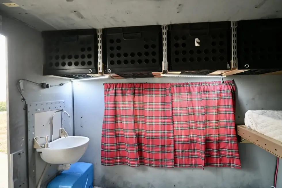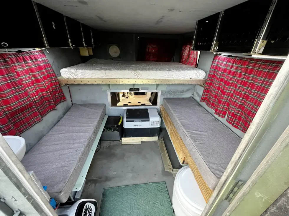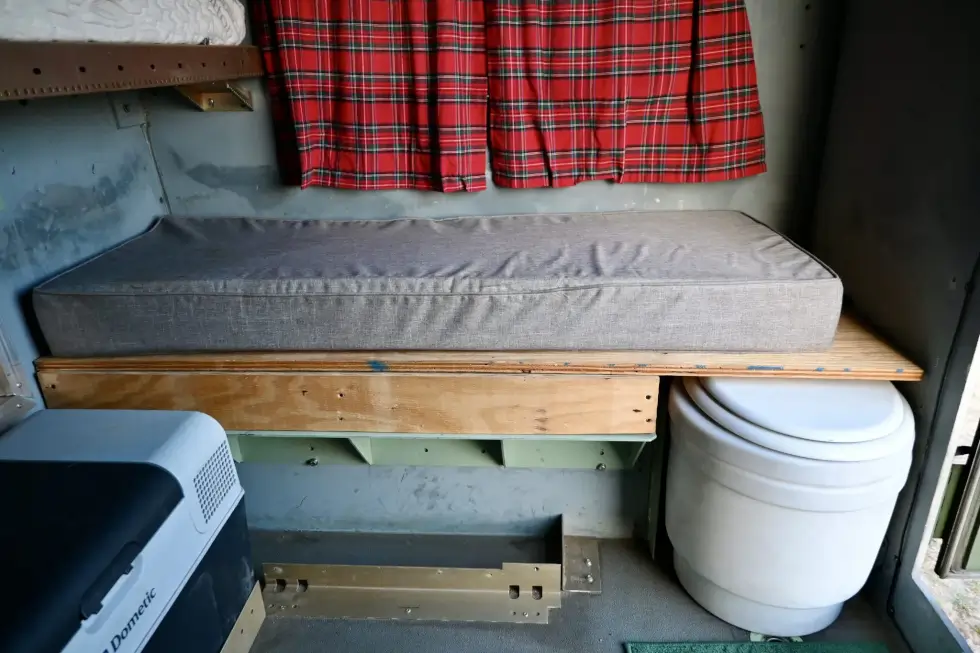Its standard configuration touts a dual-range transfer case and portal axles on both ends to give it more than enough ground clearance. The pickup bed has been outfitted with an aluminum drop-in camper. Inside, you’ll find bench seats which double as beds, another full-size bed, a Dometic refrigerator, a Laveo DryFlish toilet, a Zero Breeze portable AC system, LifeSaver water filtration with a sink, and more.
