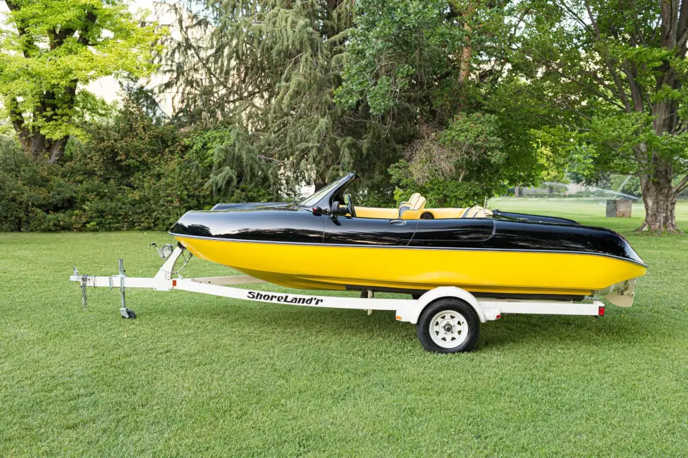 We believe Porsche fans should check this out as it offers a sleek watercraft with an automotive spin. The silhouette resembles a 1990s 911 but you can only drive it on water. This 16-foot speedboat sports a two-tone colorway. The deck is finished in gloss black while the hull is in a vibrant yellow, which is sure to turn heads your way.