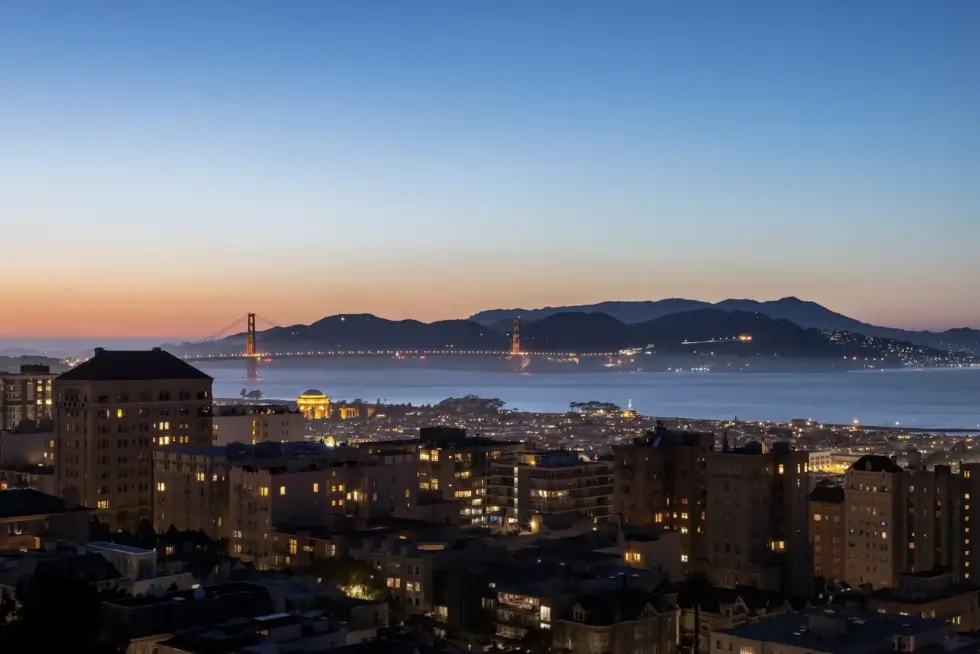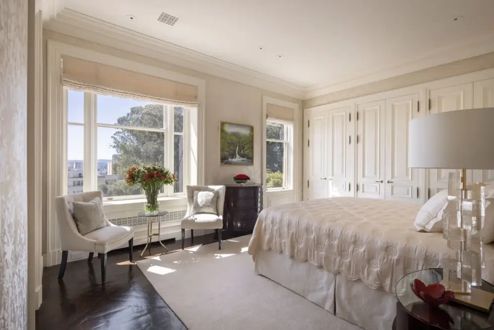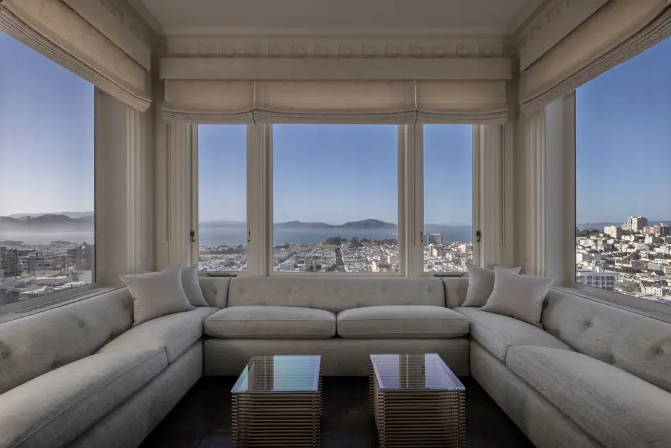 The 2000 Washington #7 penthouse in San Francisco, California is one of only two pre-war duplex penthouses in Pacific Heights that boasts a striking panorama of the San Francisco Bay, from Golden Gate to Alcatraz to Russian Hill. It is currently on the market for $19,900,000.