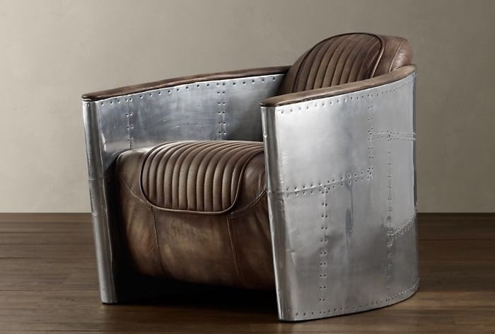 If you are looking for a manly piece of furniture then this is it. Inspired by WWII bombers, this chair is made from soft ribbed whiskey leather, covered in aluminum.