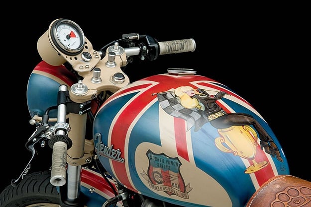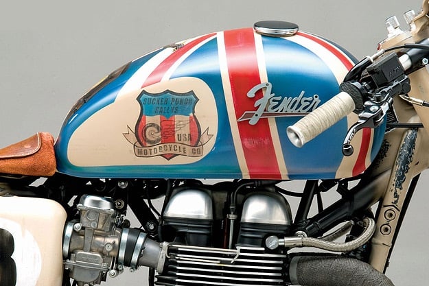 With that in mind, the Fender Triumph Thruxton by Sucker Punch Sallys is an explosion of sexy design and is not short on cultural heritage either. Sucker Punch Sallys built a custom 2009 Triumph Thruxton specifically for the guys over at fender. Triumphs are of course classical in the way they offer vintage biking designs in modern packages, while Fender is the world’s premier guitar manufacturer and also knows a thing or two about blending history with the present.