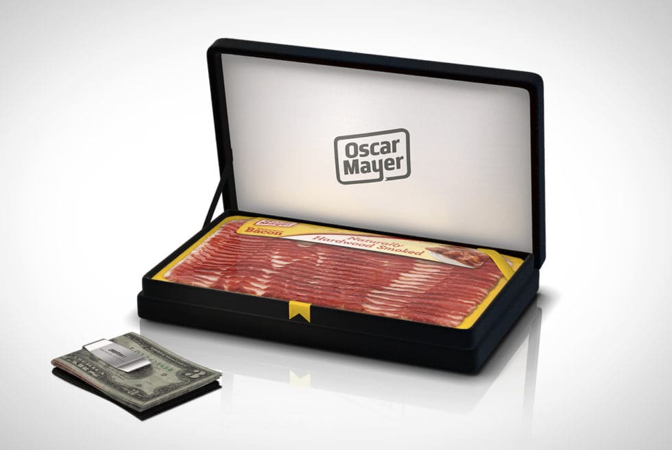 There are several different Bacon Gift Boxes available, but each comes with a gadget. The Matador Box comes with bacon cufflinks, the Commander Box comes with a money clip, while the Woodsman Box features a multi-tool. Each box includes 18-20 strips of delicious naturally hardwood smoked bacon, and each is climate controlled to keep that tasty food in the best of order.