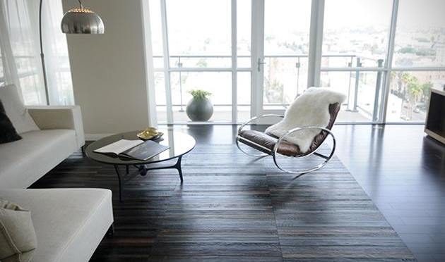 Wooden flooring is timeless in our opinion. Carpet may flit in and out of fashion but a quality wood floor looks great in most design circumstances, however, we will freely admit that a dark wood floor is hardly original. How about creating the dark wood effect but doing so with an utterly innovative design and a material not oft used? Yeah, that sounds more like it.