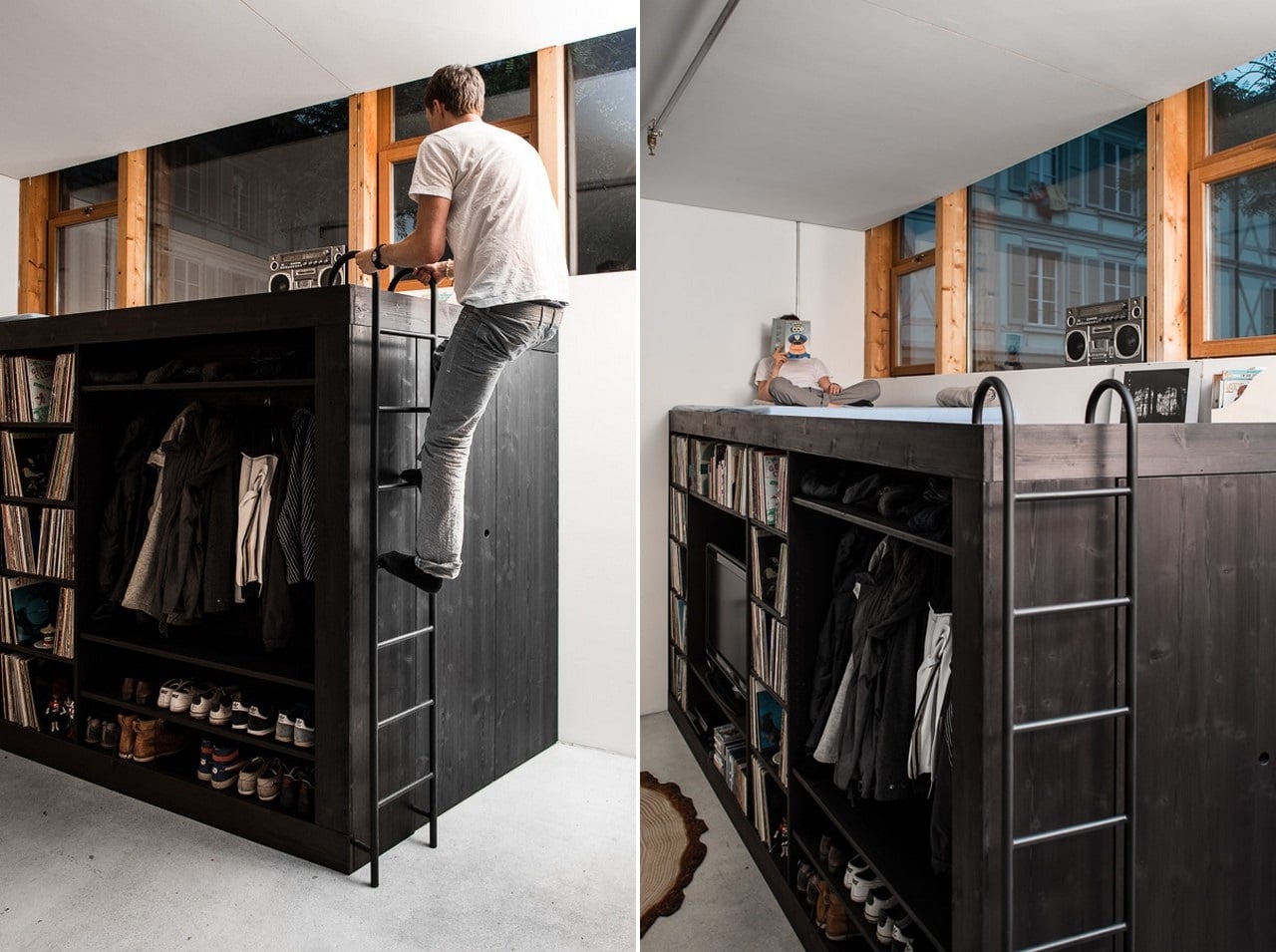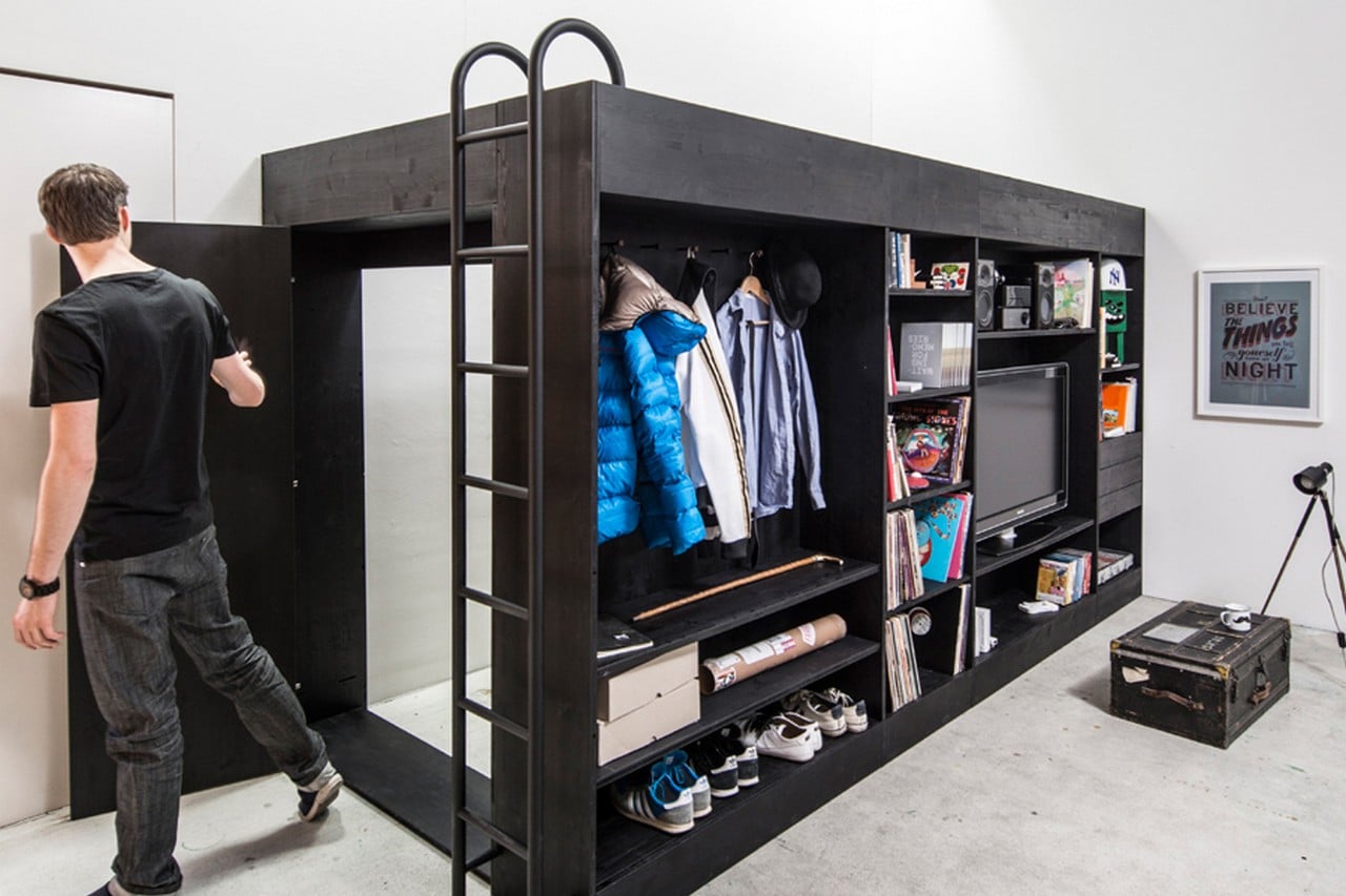 The Living Cube features plenty of storage space (for a TV, books, CDs, clothes, etc.), a bed on top and even a walk in storage section on the side. Unfortunately, this is not a product you can buy, but its logical approach to the studio apartment will surely lead to people in cities drawing up their plans and building their own Living Cube.