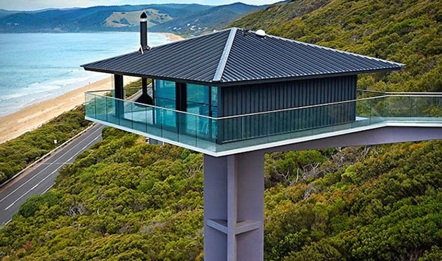 Amnesia House features metal gabled roof and a muted palette that responds to the shifting colors of its surroundings.
