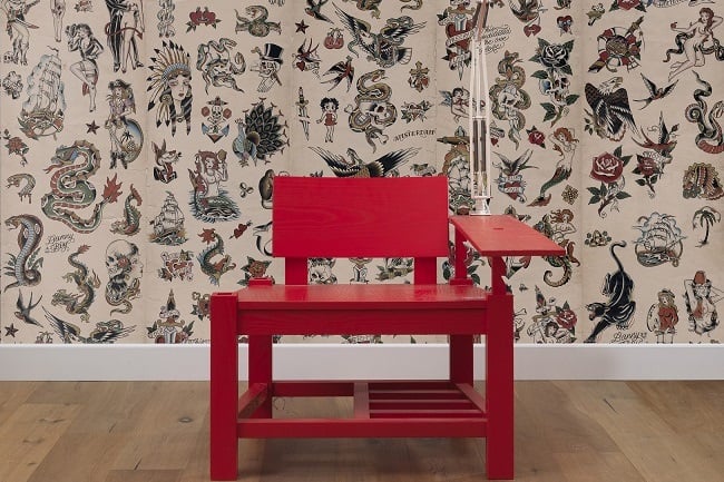 The Tattoo Wallpaper($299.00-53 SQ FT) gathers a bunch of non-repeat beautiful prints like skulls, sexy mermaids, vintage roses, cobras, pirate ships and many other fascinating old school tattoos. This is a heavy duty wallpaper that is washable with a soft cloth and its color will not change or lose brightness, no matter how many times you clean ketchup from it. We can picture this gorgeous wallpaper covering the walls of a coffee shop, tattoo place and even a living room. Do you feel bold enough? via