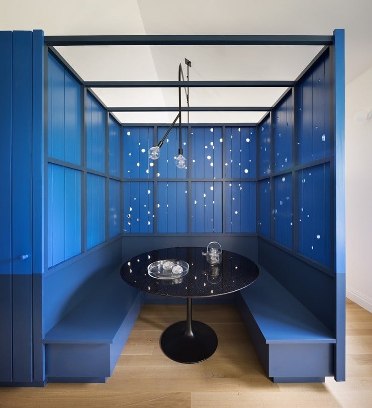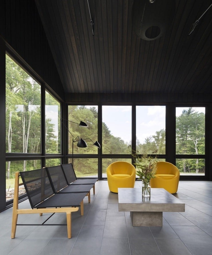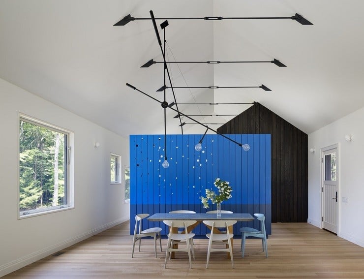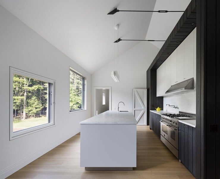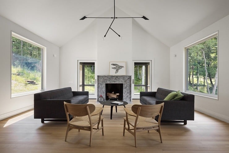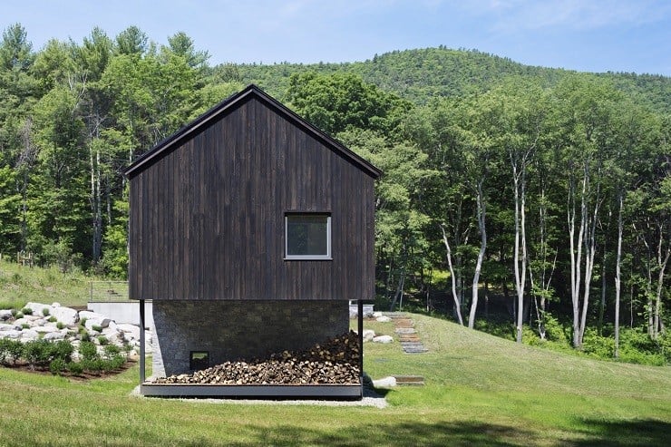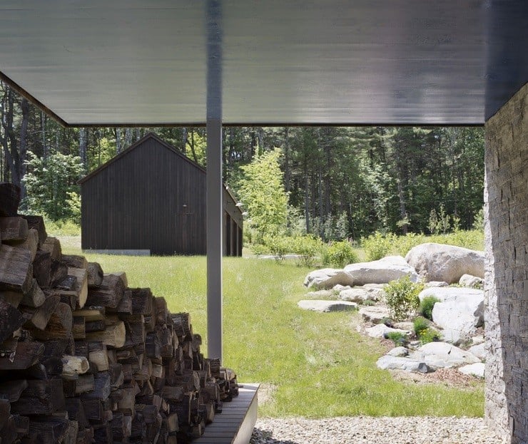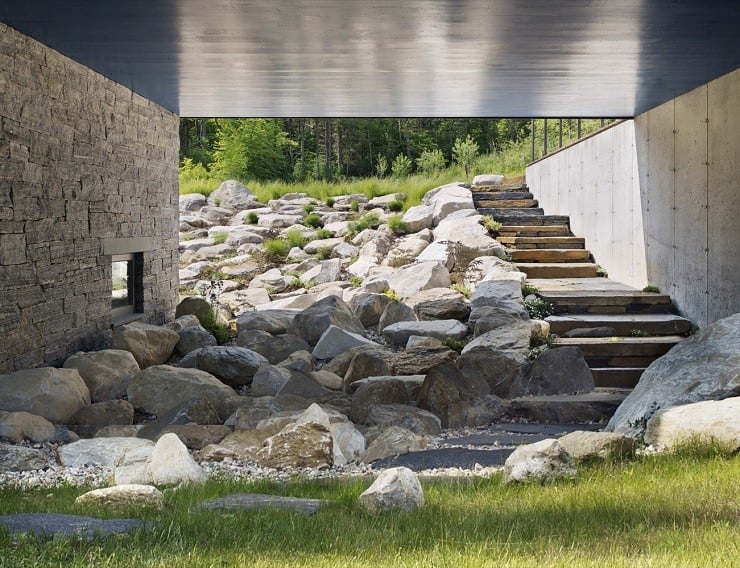 By designing the Undermountain House, O’Neill Rose Architects demonstrated how balanced a home can be with its environment.  This elongated construction set in Sheffield, MA, USA, has one end anchored firmly into the hill while the other is suspended over a manicured wetland that leads under the house to the footbridge at the entry way, where it flows through the boulder strewn channel carrying the excess into the meadow below.