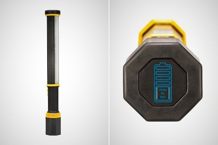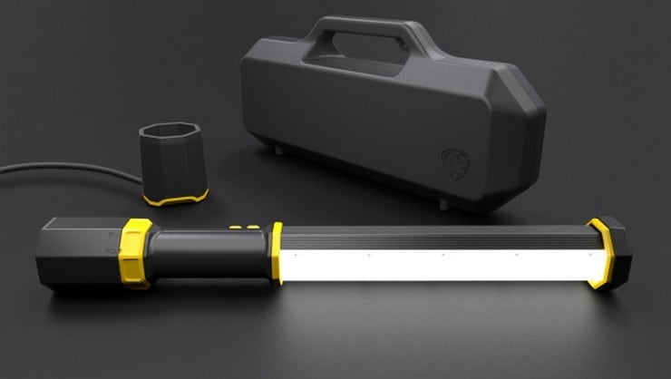 This sleekly designed portable LED light source is small; only 2 foot long by 2 inches in diameter and weights less than 4 pounds. It has six variable settings from a low 80 lumens up to a blazing 5,000 lumens – or as bright as three 100-watt incandescent bulbs – and its light angle exceeds 180 degrees for larger area coverage. Its rechargeable battery provides up to 48 hours of continuous light (1.5 hours at highest setting), while the octagonal shaft design keeps the light bar from rolling away.
