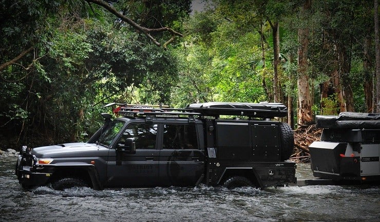 Even the standard package from Patriot Campers will handle most off-road adventures you could imagine.  There is a chassis extension for greater room, an EFS suspension upgrade, winches both front and rear, and ROH wheels to go with the Supertourer body.  Beyond that, the customizable options make it possible to outfit the LC79 into almost whatever you desire.  Upgrades include slide out drawers and tool boxes, a kitchenette setup, multiple storage lockers, and a pop-up tent.