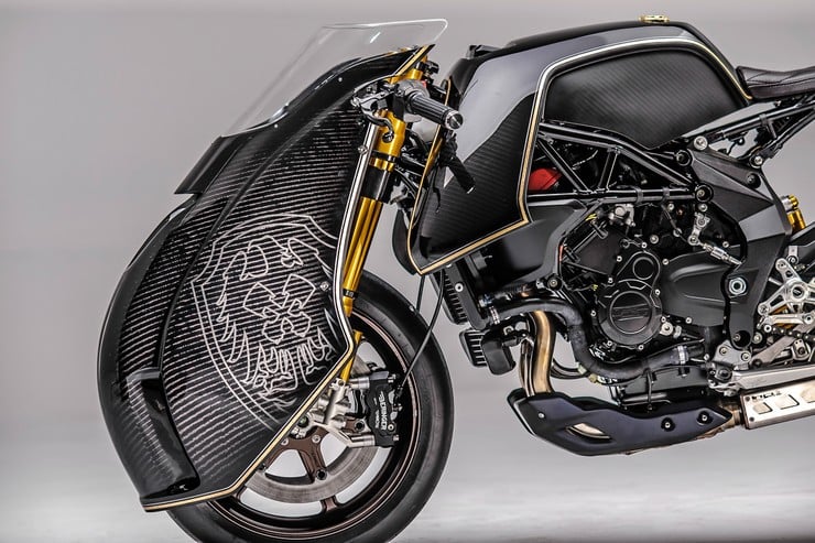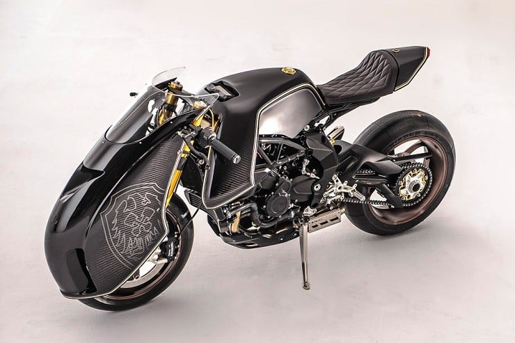 Rough Crafts owner Winston Yeh has recently turned his attention to customizing an MV Agusta BRUTALE 800RR into what appears to be a sci-fi dream of otherworldly muscle. Like all of Rough Craft’s creations (check out their awesome Bavarian Fistfighter), the ‘Ballistic Trident’ sports the same carbon fiber finish, body creases, & muscular stance that makes their customs so noteworthy.