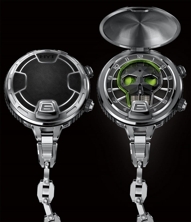 As exclusive and dramatic timepieces go, the new super limited edition HYT Skull Pocket Watch ($115K) is definitely in the running.  With the entire run being limited to only eight of these unusual pocket watches, exclusivity is ensured.
