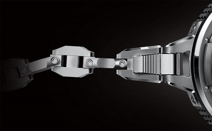 The visible (through the sapphire caseback) mechanism inside is a hand-cranked, mechanical caliber offering a 65-hour power reserve.  The case itself is a light but rugged DLC coated titanium which matches the faceted titanium chain attached at the 6:00 o’clock position.  The HYT Skull Pocket Watch is the perfect way to remind yourself that time always flies to its inevitable conclusion.   [via]
