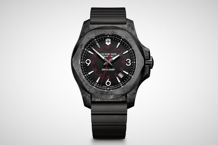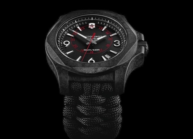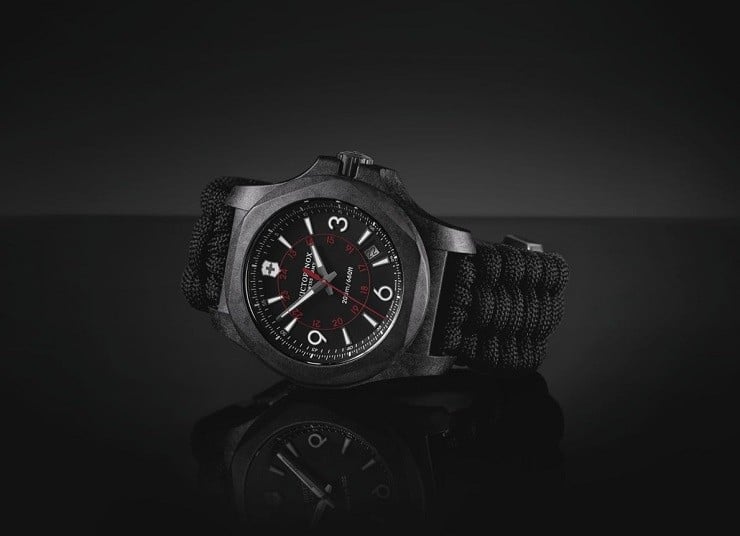 The Victorinox INOX Carbon Watch ($950) is the latest addition to the I.N.O.X. line of adventure watches.  The name “Carbon” is for its stylish black case, dial, and cord wristband.  It is also for the rugged scratch and shock resistance of the hypoallergenic case.  The black resin composite used in the case is the same material used to protect the space shuttles from the heat-buildup during re-entry and has been proven to withstand 1,260 degrees Celsius; way more then you probably could yourself (unless you’re the Terminator)!
