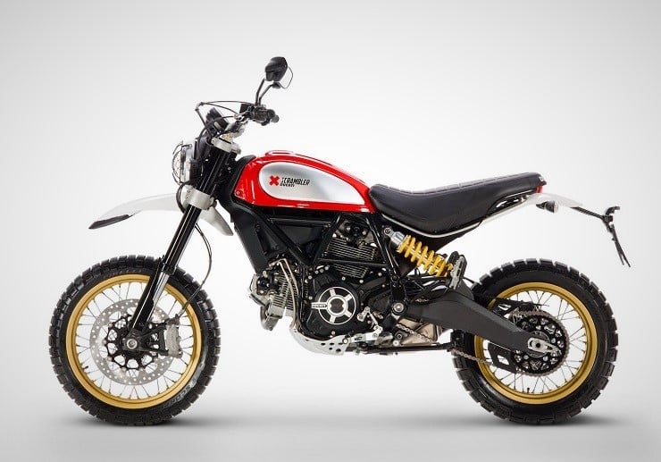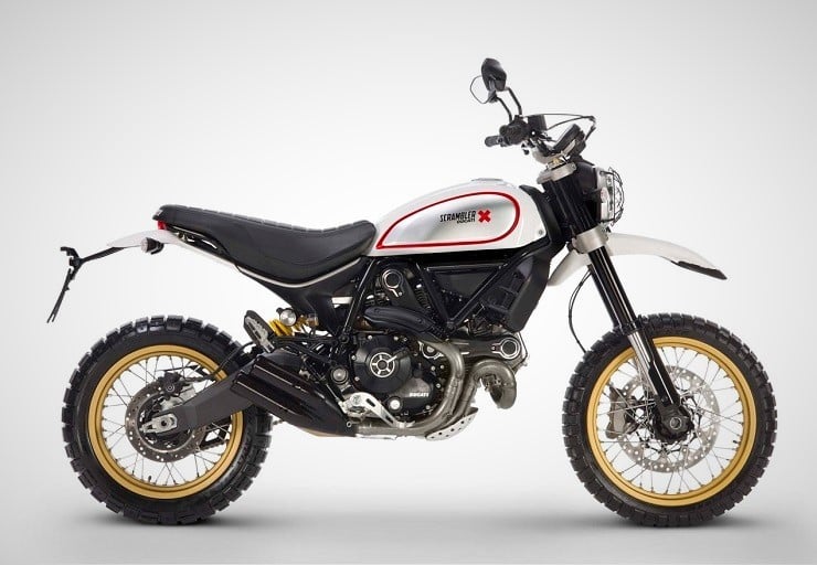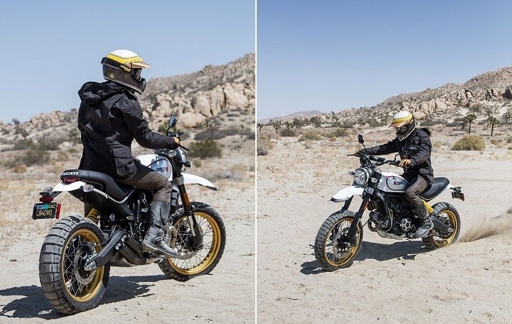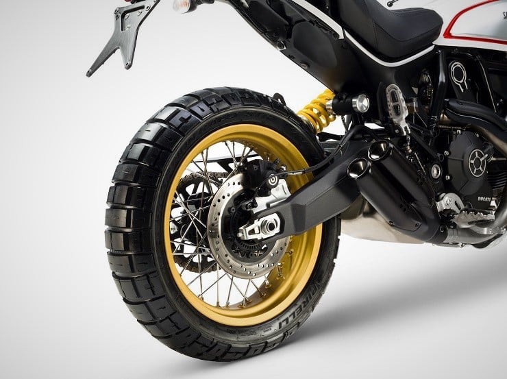 The Desert Sled maintains the same 803cc L-Twin engine & 6-speed transmission of Ducati’s previous Scrambler, and that is about where the similarities end.  The longer swingarm and tubular frame have been reinforced, the triple clamps have been upgraded and given better clearance, and the tires are Pirelli Scorpion Rally STR – specially designed for the sand and rock.