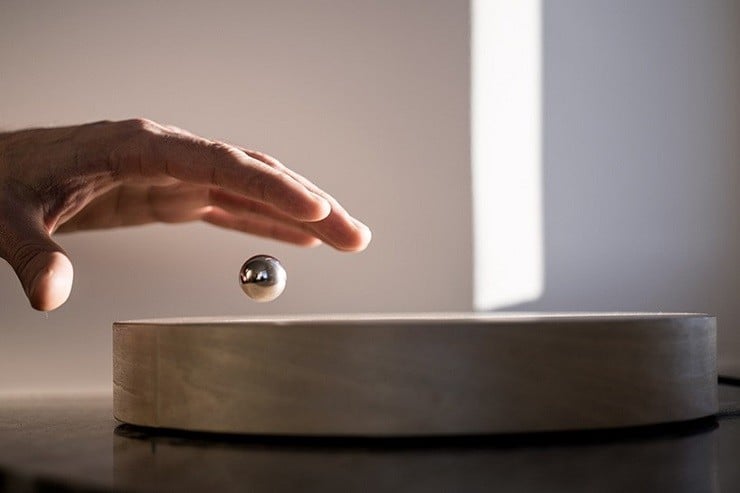 One of the hallmarks of civilization is the ability to keep and tell time. Measuring the flow of linear time is an art unto itself and now it has influenced a work of art. Swedish design company Flyte has created STORY – The Levitating Timepiece ($400) to be unique in that the time indicator is a chrome ball levitating over the face of the clock and traveling through the air around the dial.