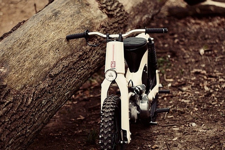 Rarely we come across a rugged moped that’s specifically designed to tackle the off-roads.  The Honda C50 Custom Moped by 56 Motorcycles ($NA) is exactly that, and it’s a fun looking ride too.
