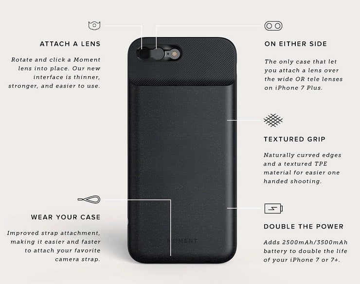 Rather than having to attach a mount to accommodate external lenses, the Moment iPhone 7 Photo Cases ($25+) wrap your smartphone safely and have an incorporated mount.  Built to make use of the new and improved 1.8 aperture, the cases arrive with a DSLR-like shutter button that is fast and accurate, and also eliminates the need to touch the screen and risk messing up your shot.
