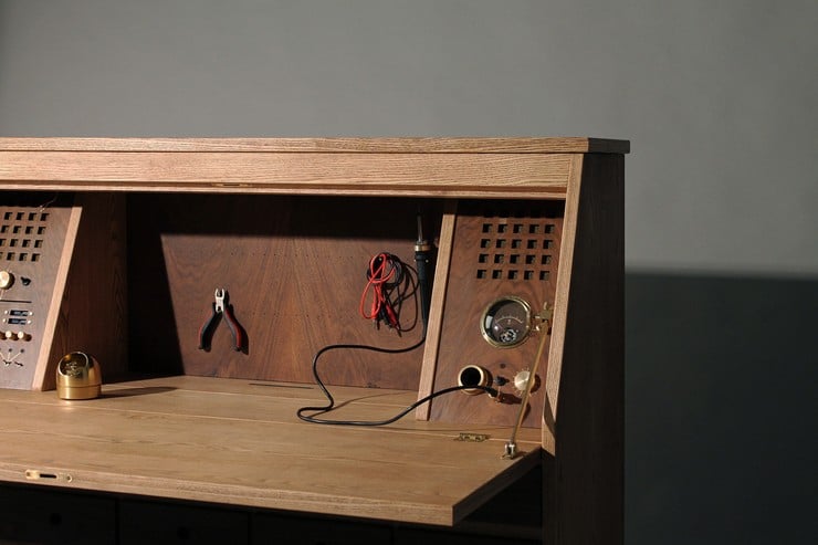 Drawing influence from fine 19th-century woodworking craftsmanship, Swedish designer Love Hultén has produced a classically styled piece of quality furniture which incidentally houses a proper workbench for both high and low-tech projects.