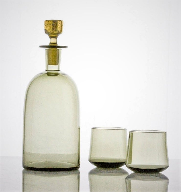 His latest creation consists of very understated 8 oz. whiskey glasses.  Utilizing a no-frills approach, the Decicio Handblown Whiskey Glasses ($100-set of 4) have a subtle curve which makes them a pleasure to hold.  The materials are simple and traditional as well.  Silica sand, soda ash, and potassium are blended with the colorant materials and fired at 2,400 degrees Fahrenheit before Greg and his artisans can form the items.